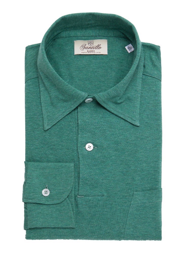 This garment called TILDEN is realized with vintage jersey brushed in pure giza cotton from 1970, featured by a bright an silky green.